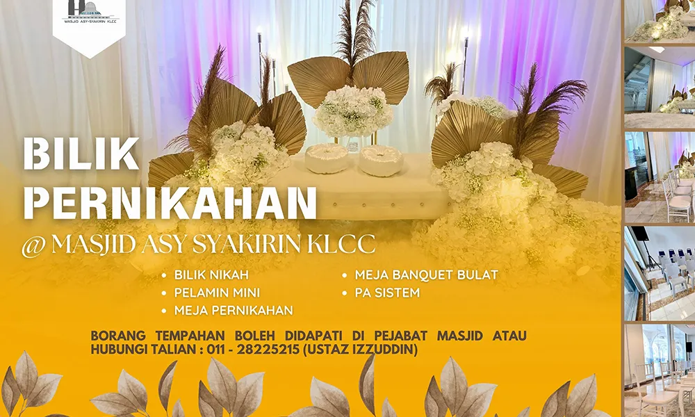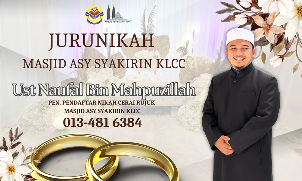 Masjid Asy-Syakirin menyediakan perkhidmatan jurunikah yang profesional dan berpengalaman bagi memastikan perjalanan akad nikah berlangsung lancar, mengikut prosedur syariah dan penuh keberkatan. Pasangan yang ingin melangsungkan perkahwinan di masjid ini boleh mendapatkan bimbingan dari pihak kami, termasuk persiapan dokumentasi serta sesi taklimat sebelum majlis.
